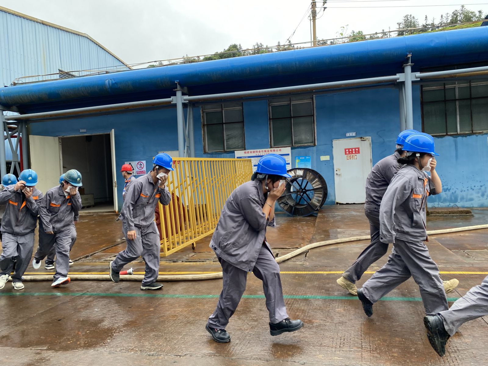 本次演練的人員有:公司總經(jīng)理應韻進(擔任總指揮),生產(chǎn)副總呂田明、HSE總監(jiān)李閩(分別擔任副總指揮),新老廠區(qū)生產(chǎn)部、HSE部、后勤部門主要負責人及生產(chǎn)部門一線員工等共計100余人。
